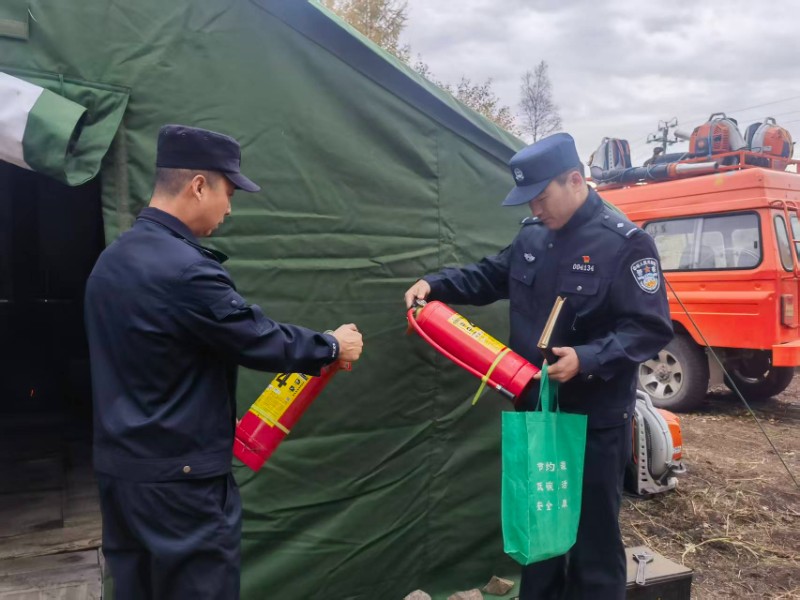 野外作业,山高林密,一丝火星都可能引发燎原之势。防火器材作为守护安全的“第一道屏障”,其完好有效直接关系到每一位作业人员的生命安全和生态环境的稳定。为切实消除火灾隐患,近日,内蒙古大兴安岭森林公安局吉文分局吉库派出所民警始终将防火器材检查作为保护林区“必修课”,以“零容忍”态度筑牢安全防火墙。
